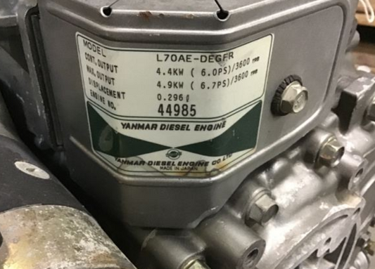YANMAR ENGINE L70AE-DEGFR AS IS L70AE-DEGFR 98-19513 Diesel