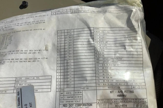 H1 HMMWV M998 HUMVEE Red Dot Kit AIR CONDITIONING KIT A/C M998 RD-2-4233-OP