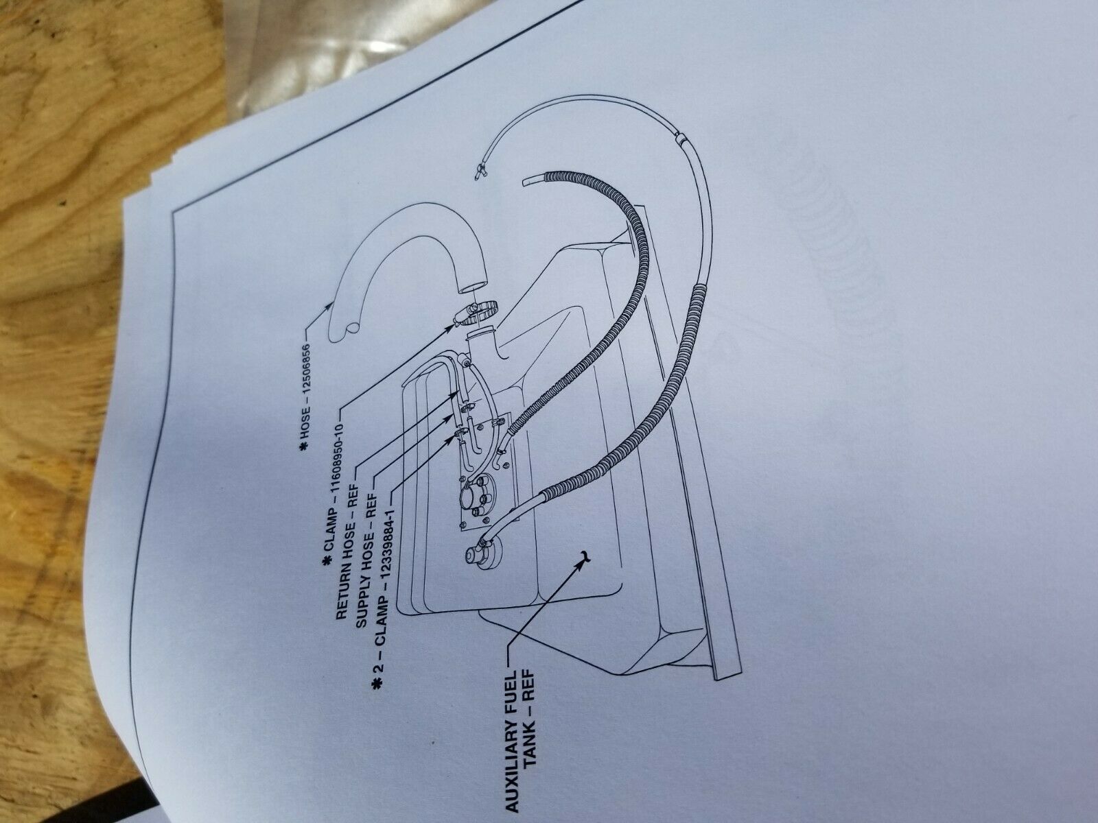 The Aux tank gravity feeds the main tank by way of three hoses, 2 for each end of the lower saddle tank and the big hose that used to be the main tanks filler neck. Takes a day or so to install.